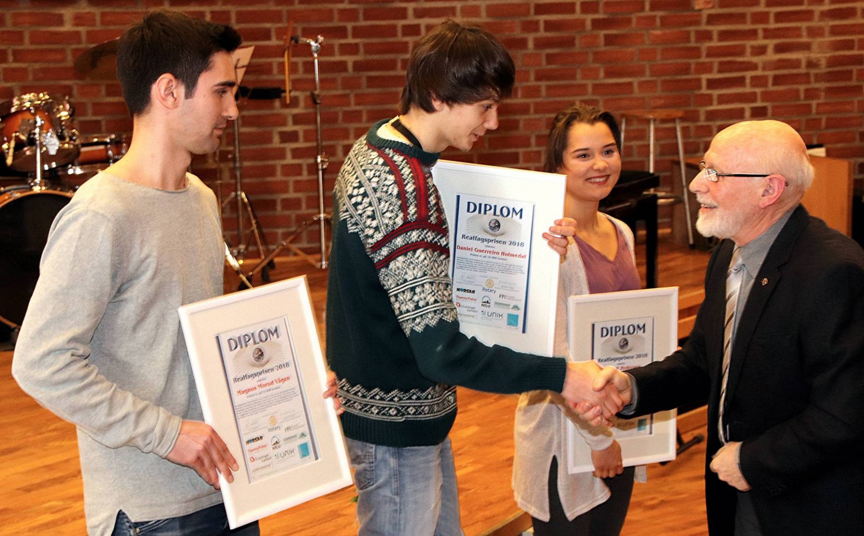 Assisterende distriktsguvernør, Jarle Gausen, gratulerer med prisene.